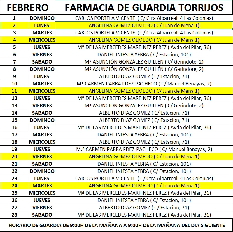 Consulta aquí el listado actualizado de farmacias de guardia en Torrijos. Te mostramos qué farmacia está abierta hoy, horarios de guardia nocturna, fines de semana y festivos, para que encuentres atención farmacéutica siempre que la necesites. Servicio útil y accesible para todos los vecinos de Torrijos y alrededores.